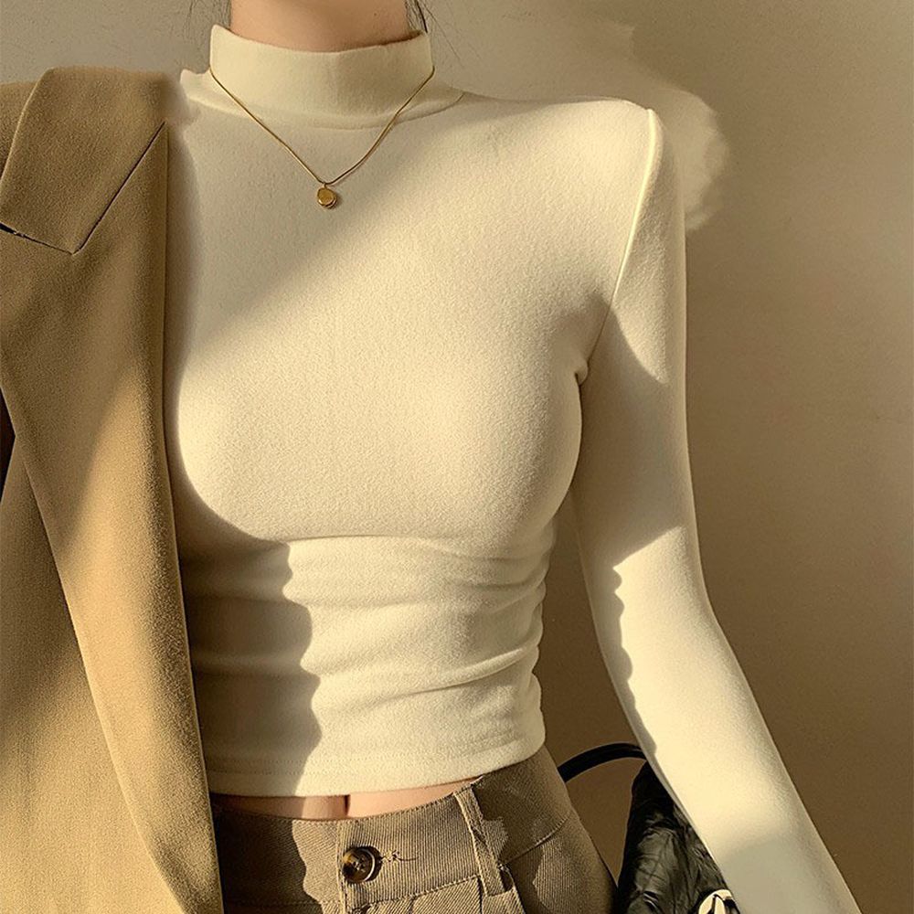 Fashion Women's Solid Color Fleece Bottoming Shirt