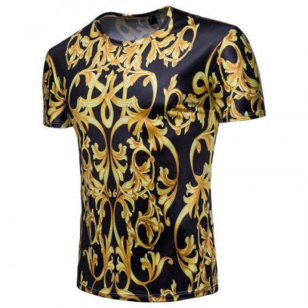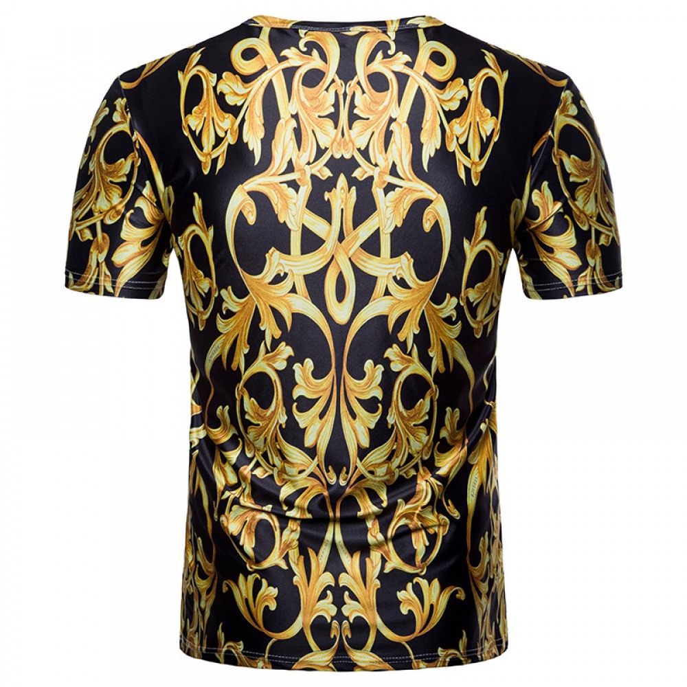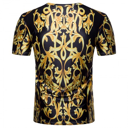 Men's 3D Short-Sleeved T-Shirt Royal Gold Texture Printing Palace Style T-Shirt