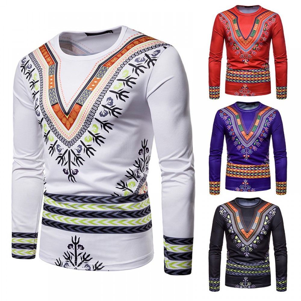 Men's Personality Ethnic 3D Printing Round Neck Long Sleeve T-Shirt