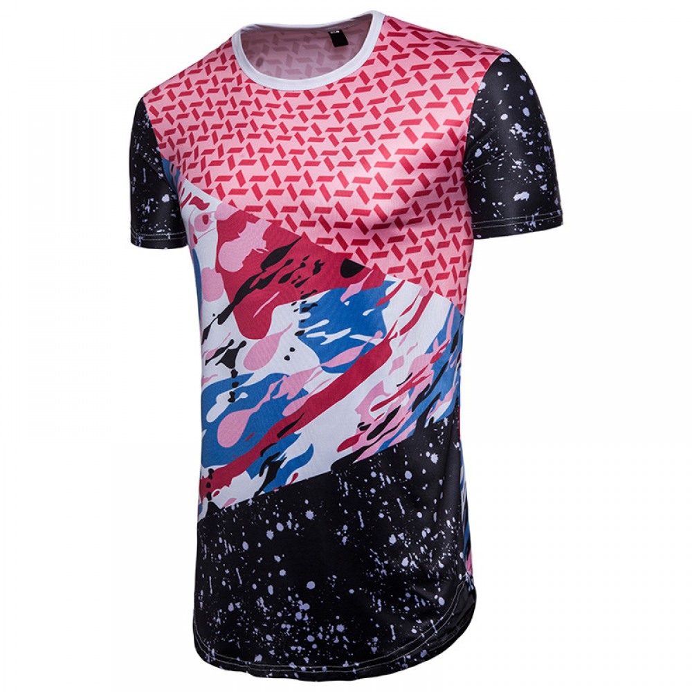 New Digital Printing Color Matching Men's Long Short Sleeve T-Shirt