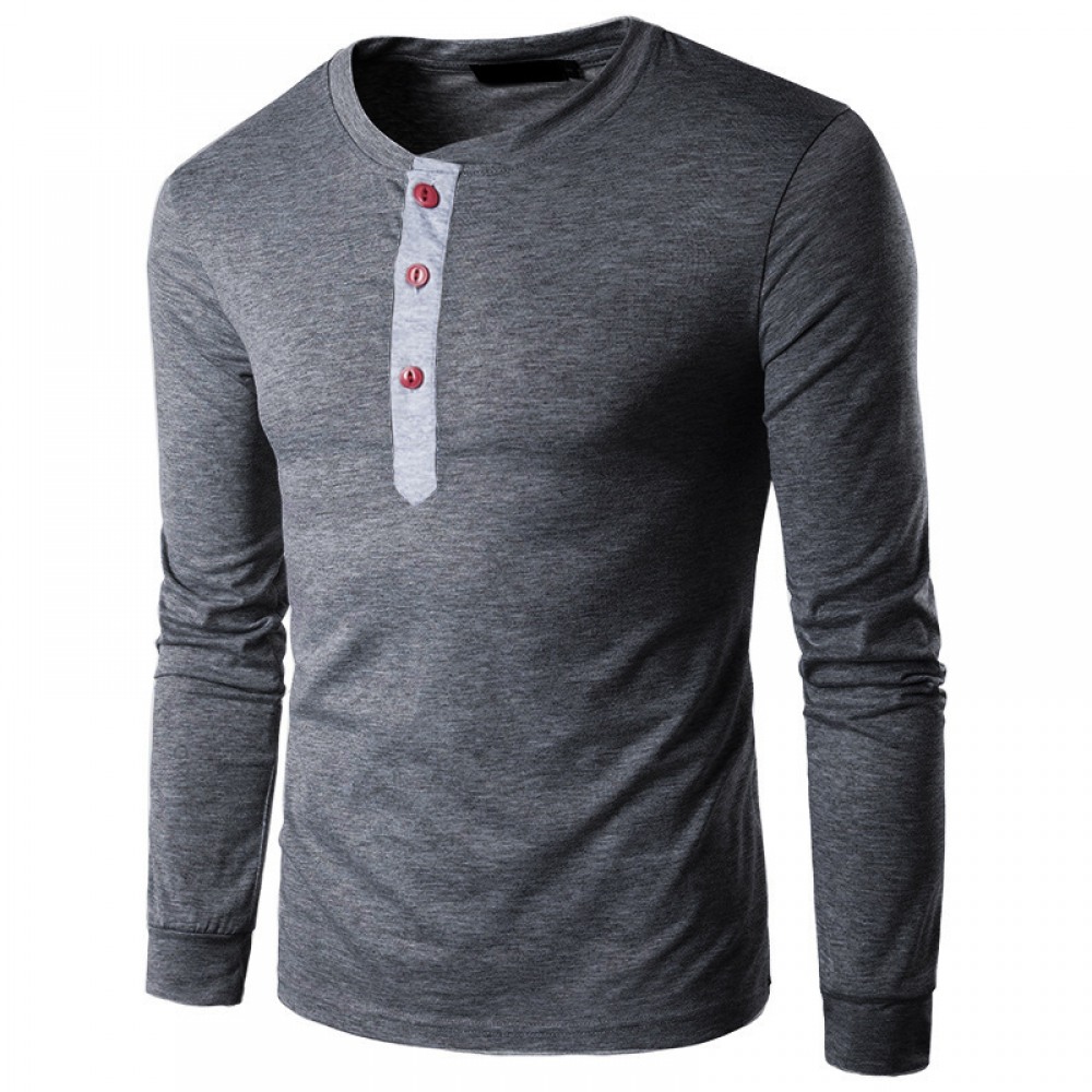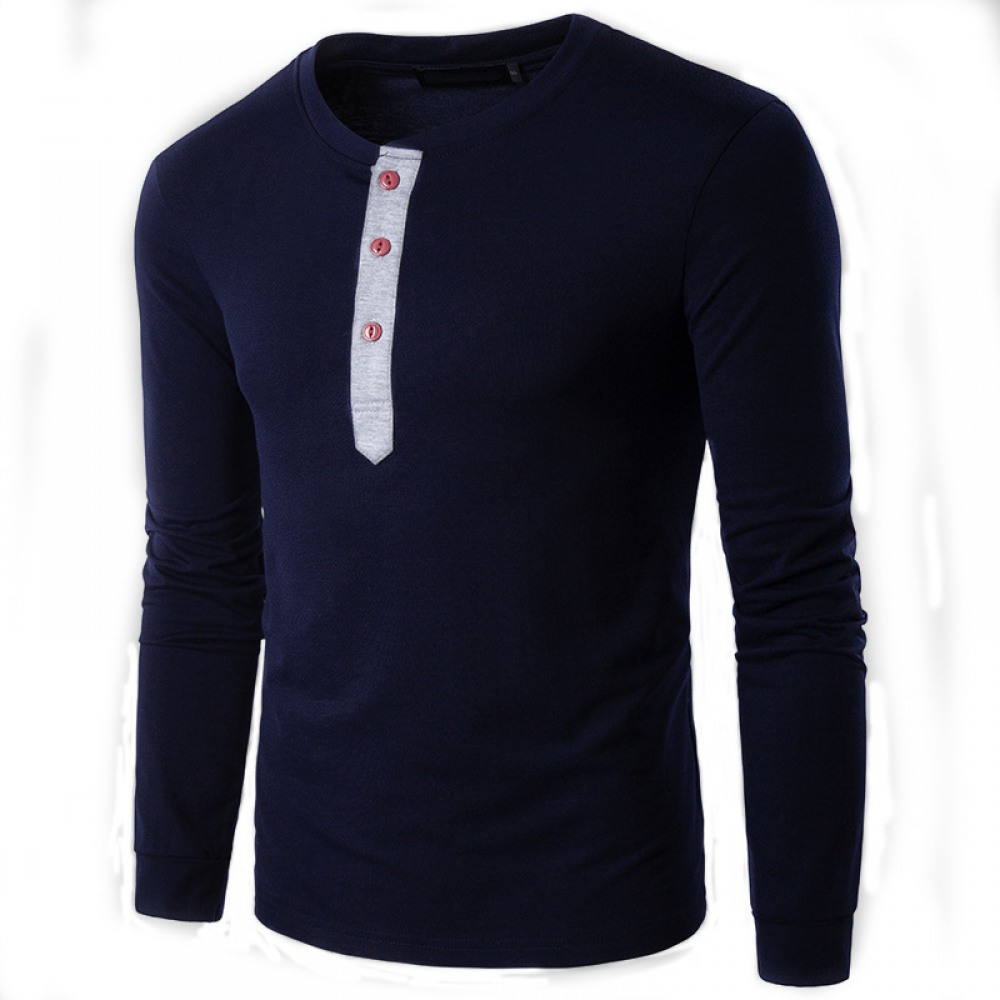 Men's Henry Collar Color Matching Long-Sleeved Plus Size T-Shirt