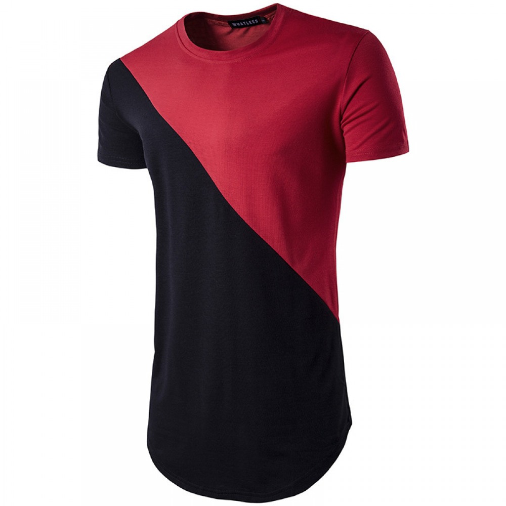 New Men's T-Shirt Slim Mid-Length Color Matching