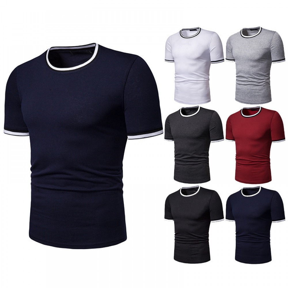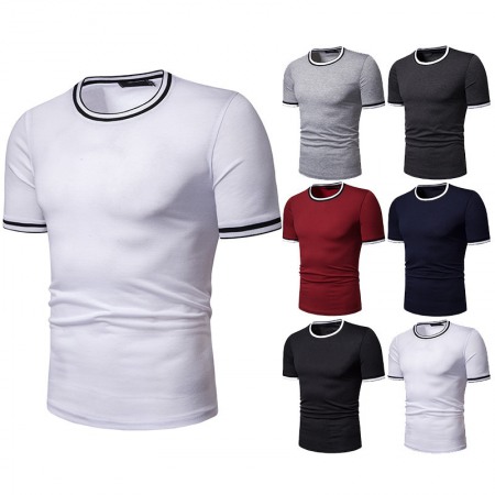 New Summer Men's Short-Sleeved T-Shirt Mens Contrast Striped Slim Casual T-Shirt